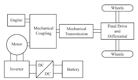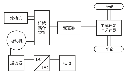 The parallel HEV has the following advantages.First,a parallel HEV needs only two propulsion components,ICE and an electric motor.The motor can be operated as a generator and vice versa.Second,the engine and the motor can be rated at reduced power levels for shortdistance trips.For long-distance trips,the engine may be designed for maximum power,while the motor/generator may still be rated to half the maximum power.However,the mechanical structure and power-train control is complex due to the necessity of power coupling for the ICE and the motor.It is also this complexity that gives more freedom for the power-train control to optimize fuel economy and vehicle performance.