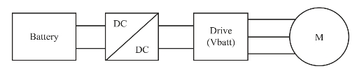 The most common architecture corresponds to a direct connection with the battery as presented by the diagram in Figure 5.4.Architectures as voltages of converter and motor are defined by battery voltage,all the criteria(like performances and costs)can not always reach.