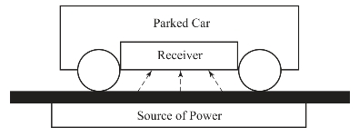 There have been a few different experiments carried out for wireless energy transfer.The most promising technology is using electromagnetic resonance as shown in Figure 6.7.In this setup,there is a pair of antennas with one inside the parking structure as the transmitter and one inside the car as the receiver.The two antennas are designed to resonate at the controlled frequency.The limitations are the level of power transfer,and efficiency due to the large air gap between the two antennas.