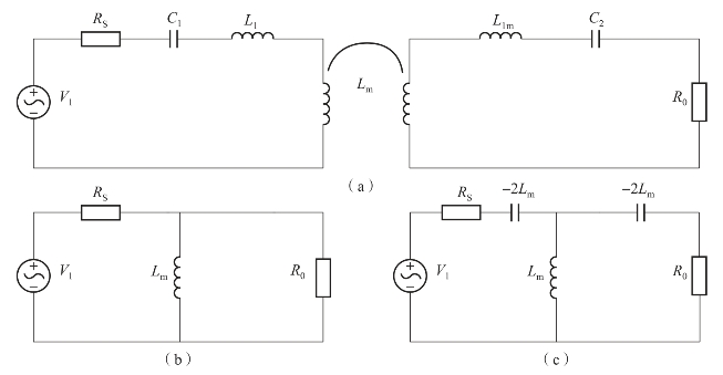 (a)circuit;(b)equivalent circuit at resonance frequency condition1;(c)equivalent circuit at resonance frequency at condition 2