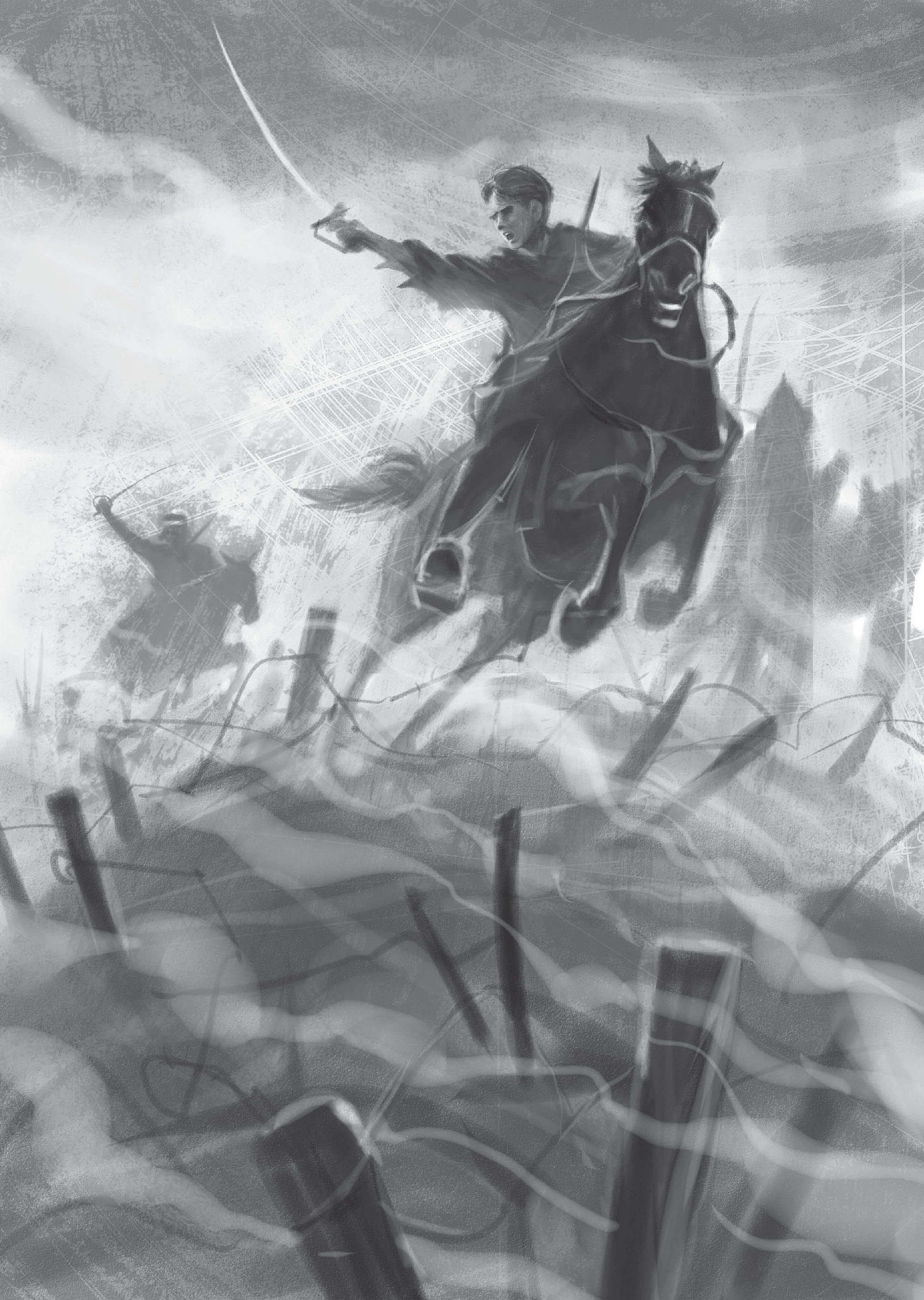 他使劲用马刀背拍了一下已经疲惫不堪、满嘴是血的战马格涅多克,向正在厮杀的人群最密的地方冲了过去。