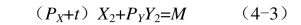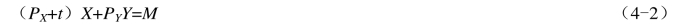 如果我们按X商品价格的一定比例对每单位X商品征税t,此时,新的预算约束为