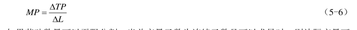 ,这就是劳动在该点的边际产量值。所以,我们可以通过计算总产量曲线上任一点的切线的斜率,来测定相对于该点的可变要素的边际产量。例如,TP曲线上A点的斜率最大,此时边际产量也达到最大值,即TP曲线上A点的斜率值;TP曲线上C点的斜率为零,边际产量此时也为零。