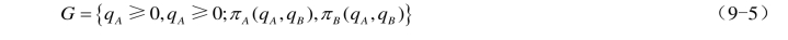 式(9-1)说明该博弈中有n个参与人;式(9-2)说明每个参与人都有哪些策略;式(9-3)说明每个参与人都选定一种策略时,每个参与人的支付水平(获得的效用)是多少。根据上面给出的三要素,策略式表述的博弈就是: