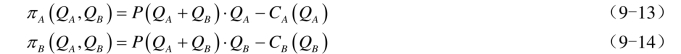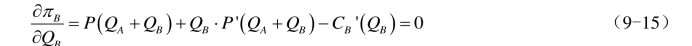 代入厂商B对厂商A的反应函数,即式(9-16)中,可得到厂商B的均衡产量?。最终得到两厂商的子博弈精炼纳什均衡Q
