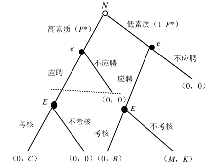 时不考核)均为精炼贝叶斯纳什均衡。也就是说,在不同的情况下,企业有条件地选择对应聘人是否考核。