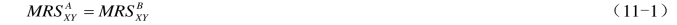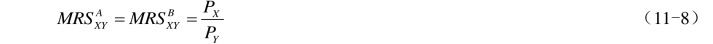 表示消费者B的X商品对Y商品的边际替代率,那么,交换(也就是商品的分配)的一般均衡的条件是: