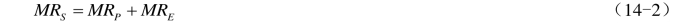 当存在外部经济时,个人的经济活动将使社会从中受益,也就是有外部收益(external cost),从而使社会收益(social benefit)等于私人收益(private benefit)与外部收益之和。考虑一个修理房屋美化家园的例子。如图14-2所示,房屋修理的边际成本MC曲线是水平的,表明这一成本不受修理量的影响。需求曲线D可看作衡量修理对房主的边际私人收益MRP。房主将选择在他的需求曲线与边际成本曲线相交处,投资QA对房子进行修理。但是,正如边际外部收益曲线MRE所示,修理给邻居带来外部收益。我们这里假定它是向右下方倾斜,即外部边际收益随修理工作量的扩大而下降。