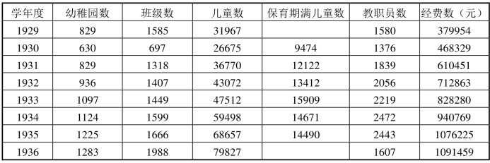 “新学制”颁布后,学前教育的师资培训机构——幼稚师范学校开始出现,尤其是1928年全国教育会议后,培养幼稚师资的教育机构逐渐增多。这一时期培养幼教师资的机构有:1916年设立的北京女子高等师范学校保姆讲习所、1917年设立的江苏省立第一女子师范学校幼稚师范科、1927年设立的福建厦门集美幼稚师范学校、1930年设立的北平幼稚师范学校、1940年设立的江西省立实验幼稚师范学校(1943年改为国立幼稚师范专科学校)。这些学前师资培训机构为当时幼稚教育培养了一大批师资力量,谱写了我国学前教育的新篇章。