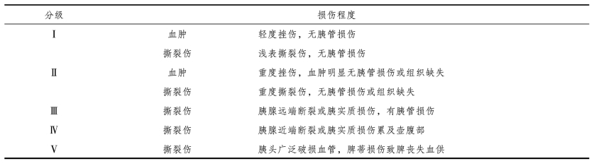 表7-3 美国创伤外科学会制定的胰腺损伤分级方法