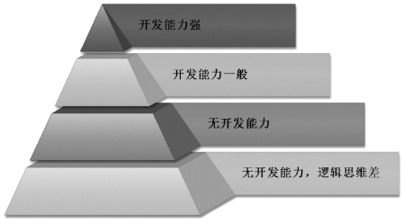 图2-2是一个机器视觉行业用户能力分布金字塔,其中大部分的从业人员都是现场操作工,他们有着丰富的实际操作经验但是缺少编程相关的专业知识,让他们用二次开发技术完成机器视觉检测任务的构建几乎是不可能的,因此机器视觉在中国工业生产中的大规模应用任重而道远。