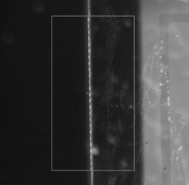 图2-9为直线定位算法示例。在算法工具区鼠标左键域单击直线定位,然后移动鼠标到图像中待检测的区域附近,再次单击图像,拖动检测框即可完成算法添加,算法结果会直接显示在图像上。
