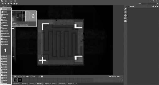 图2-8为灵闪的UI界面,其中的1号区域为算法库,用户可以用鼠标左键点击选择一个算法工具,将这个工具添加至中间的图像待检测区域。若用户不知道如何操作,也可以将鼠标短暂停留到具体的算法上,软件会弹出动画教学(图中2号区域),让用户能够更直接地理解具体用法。