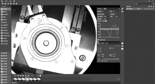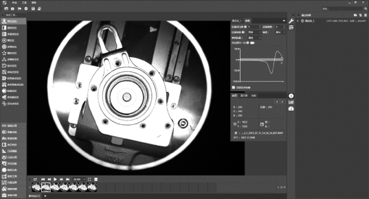图4-6与图4-7为汽车刹车卡钳检测,可以看到特征定位在汽车行业也有着一定的应用前景。通过圆定位,能清晰地定位到卡钳中间部分的零件,以及多圆定位能准确地分清卡钳表面的层次与纹理,高效地判定卡钳中间部分是否完整。