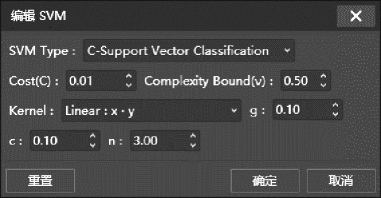 灵闪提供了多种经典常用的分类器模型,如KNN,SVM,可以同时添加多个,最后指定其中一个分类效果较好的模型作为主模型。如图10-14所示,在模型的标记界面中,可以依据对目标问题的理解和经验,直接设置该模型特有的参数,如SVM模型,可以指定SVM类型、核函数等。