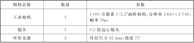 表11-2 螺丝孔检测硬件配置物料清单