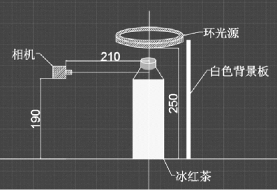在这个方案中,相机工作距为210 mm,光源离瓶底相距为250 mm,横向视野约为30 mm,根据相机的参数可以得出单个像素精度约为0.05 mm。光学方案示意如图13-9所示。