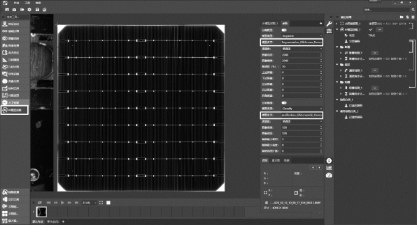 此检测方法的原理:通过深度学习分割模型将缺陷从背景中分离定位,然后再利用深度学习分类模型对缺陷进行分类,最后提取缺陷的长度、亮度等特征作为参数,筛选缺陷。