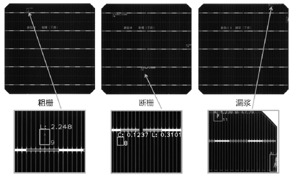 本方案主要用于检测太阳能电池片的网板印刷缺陷。图16-8是印刷缺陷图。