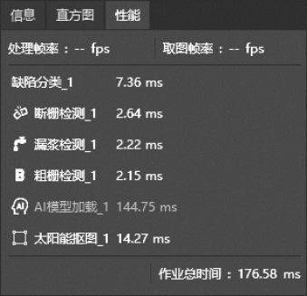 经调试得出合适的参数后,本方案已在某光伏生产车间中稳定运行,检测节拍约为0.2 s,实际算法运行时间如图16-12所示,能达到产能要求。