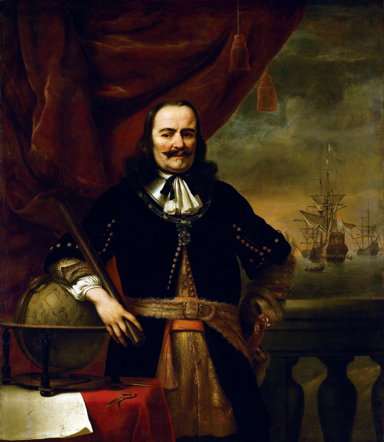 这幅巨大的布面油画的作者是荷兰画家费迪南德·波尔(Ferdinand Bol)。这位喜欢历史题材和肖像画的画家,创作风格深受伦勃朗的影响,以致在19世纪时还有人将他的作品错误地归于伦勃朗名下。波尔的父亲是位医生,波尔与海军的联系可能来自岳父,一位属于海军和葡萄酒商工会的商人,波尔受岳父的影响,得到了双方的工作委托,不仅画出葡萄酒商工会的群体肖像,还在1667年留下了《德·鲁伊特肖像》这样的名作。这幅画原来在荷兰海军手里,1808年被阿姆斯特丹国家博物馆收藏。