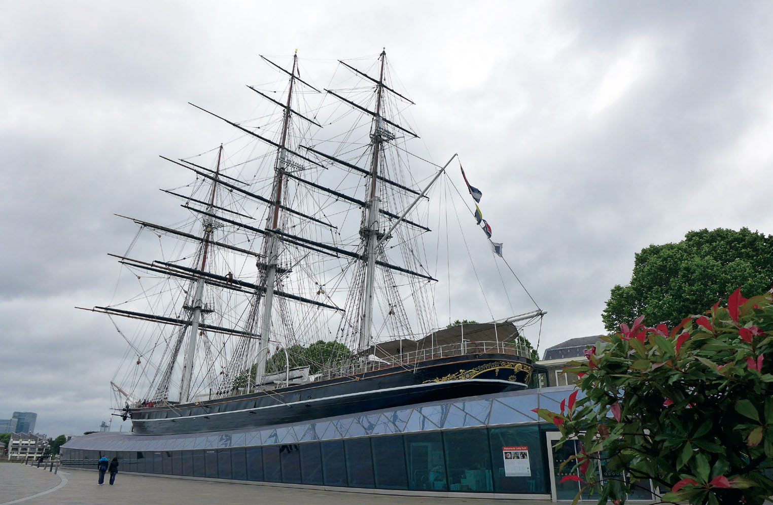 皇家海军学院彩绘厅里桑希尔爵士历时19年创作的巨大壁画美轮美奂,但卡帝萨克号却怪怪地被围板围着,没有特别了不起的样子。经过介绍,才知道它曾是一艘三桅飞剪式帆船,是存世的最古老的飞剪帆船。