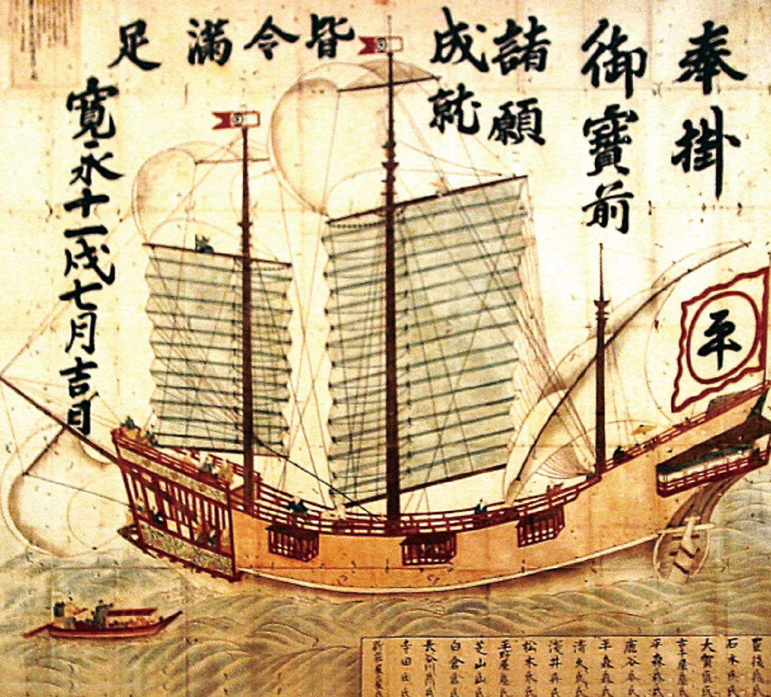 长崎锻冶屋町清水寺的末次船绘马,船上还立着一面末次平藏的“平”字尾旗
