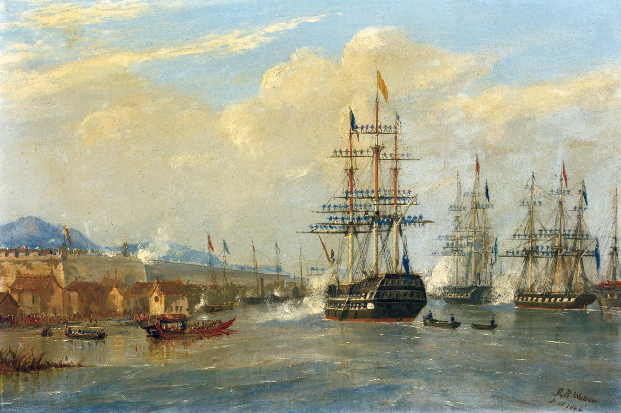 《康华丽号和英国舰队在南京城墙下向和平条约致敬》,朗德尔·伯吉斯·沃森,1844年