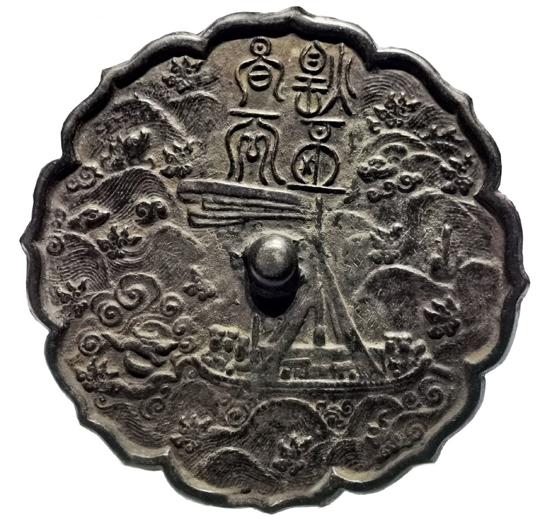 辽宁省博物馆所藏金朝海舶青铜镜,上方铸有祈福铭文“煌亟昌天”