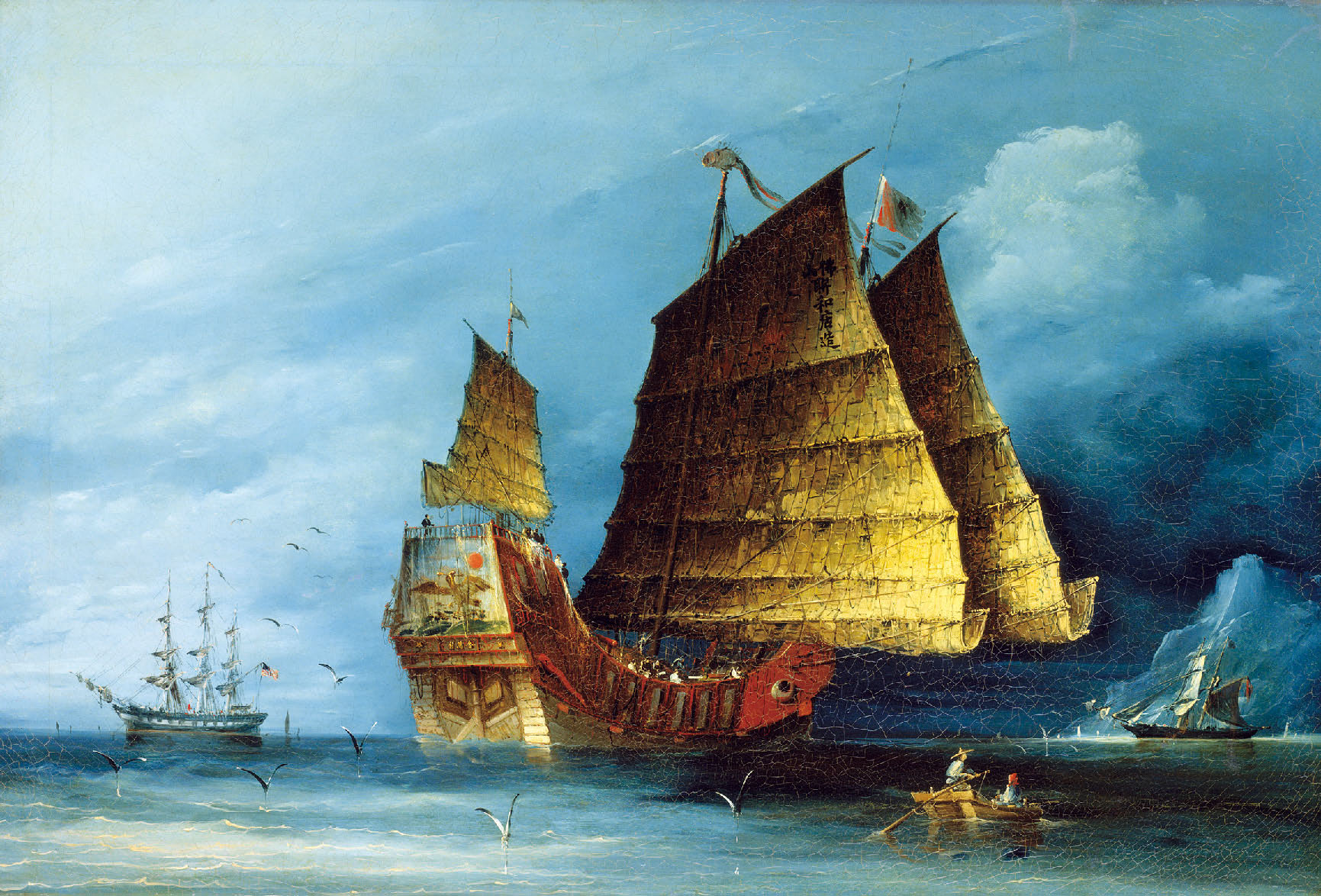 佚名中国画家绘制于19世纪的油画《中国商船》