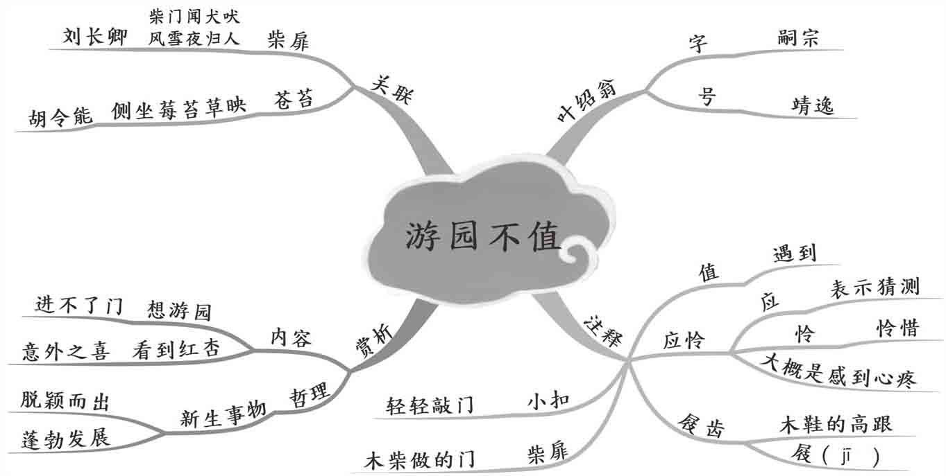 这是一首描写诗人春日游园时所见所感的诗。想要游园,但园门紧闭,无法观赏园内的花,然而却意外惊喜地看到有一枝红杏冲破围墙,溢出园外。此情此景,蕴涵了一定的生活哲理,新生事物一定会冲破重重阻碍,脱颖而出,蓬勃发展。