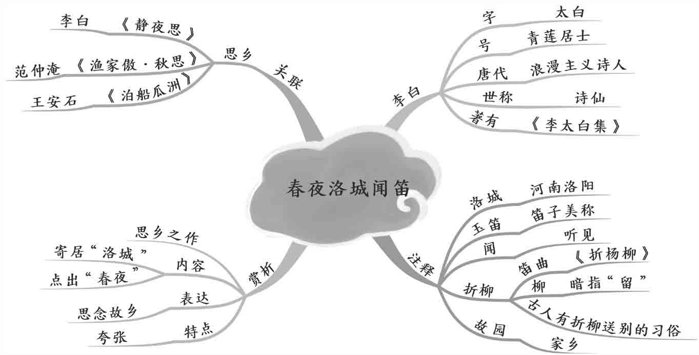 李白的老家在四川,二十多岁就离家东游,后长期居住湖北、山东,这首诗是李白的思乡之作。题目为“春夜洛城闻笛”,说明诗人因偶然听到笛声而触发了思乡之情。其中“洛城”点出客居地,“春夜”点出了季节和具体时间。此诗抒发了作者客居洛阳,在夜深人静之时被笛声引起的思乡之情,前两句描写笛声随春风而传遍洛阳城,后两句则写因闻笛而思乡。全诗紧扣一个“闻”字,抒写自己闻笛的感受,合理运用想象和夸张的修辞手法,条理通畅,感情真挚,余韵无穷。