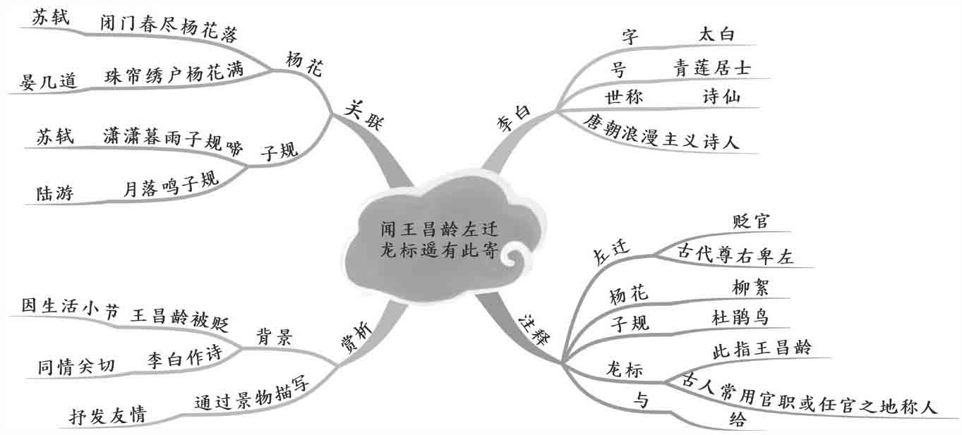 古代以右为尊,因此把降职称为左迁,这首是李白在扬州听到好友王昌龄被贬官后,写下的一首充满同情和关切的诗篇,从远方寄给他。王昌龄被贬官并不是由于什么重大的问题,而只是由于在生活小节上不够检点。这首诗通过对景物的描写,表达了诗人对王昌龄怀才不遇的惋惜和同情,以及对友人的思念之情。