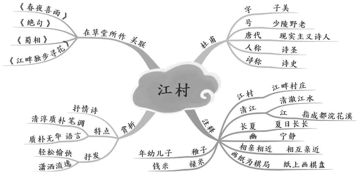 浣花溪清澈的江水,弯弯曲曲地绕村而流,在长长的夏日中,事事都显恬静、安闲。