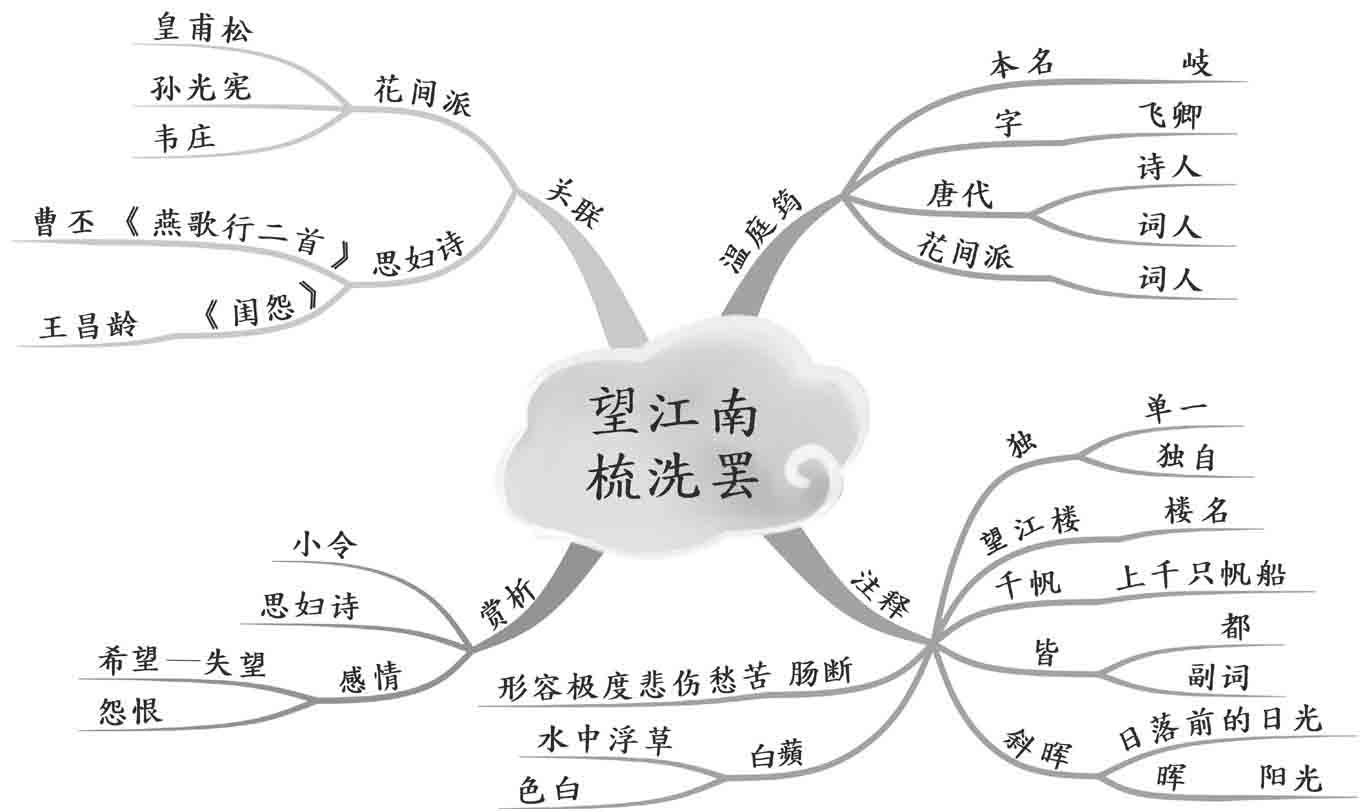 梳洗罢,独倚望江楼。过尽千帆皆不是,斜晖脉脉水悠悠。肠断白蘋洲。