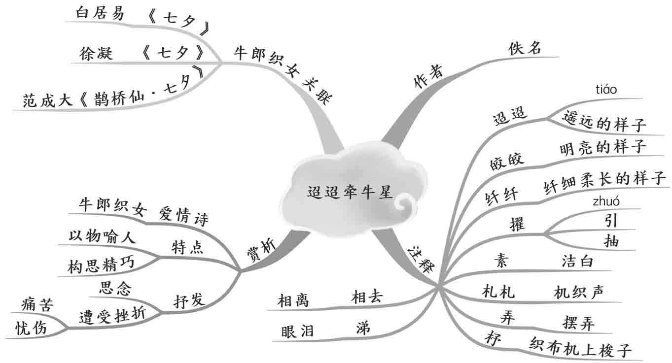 在银河东南牵牛星遥遥可见,在银河之西织女星明亮皎洁。