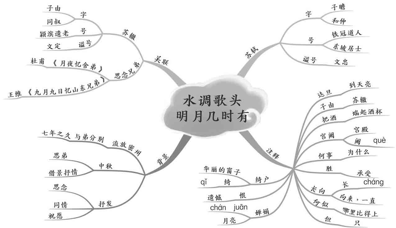 丙辰年(公元1076年)的中秋节,高高兴兴地喝酒直到天亮,喝了个大醉,写下这首词,同时也思念弟弟苏辙。明月从什么时候开始有的呢?我拿着酒杯遥问苍天。不知道天上的宫殿,今晚是哪一年。我想凭借着风力回到天上去看一看,又担心美玉砌成的楼宇,太高了我经受不住寒冷。起身舞蹈玩赏着月光下自己清朗的影子,月宫哪里比得上在人间?月儿移动,转过了朱红色的楼阁,低低地挂在雕花的窗户上,照着没有睡意的人。明月不应该对人们有什么怨恨吧,可又为什么总是在人们离别之时才圆呢?人有悲欢离合的变迁,月有阴晴圆缺的转换,这事儿自古以来就很难周全。希望人们可以长长久久地在一起,即使相隔千里也能一起欣赏这美好的月亮。