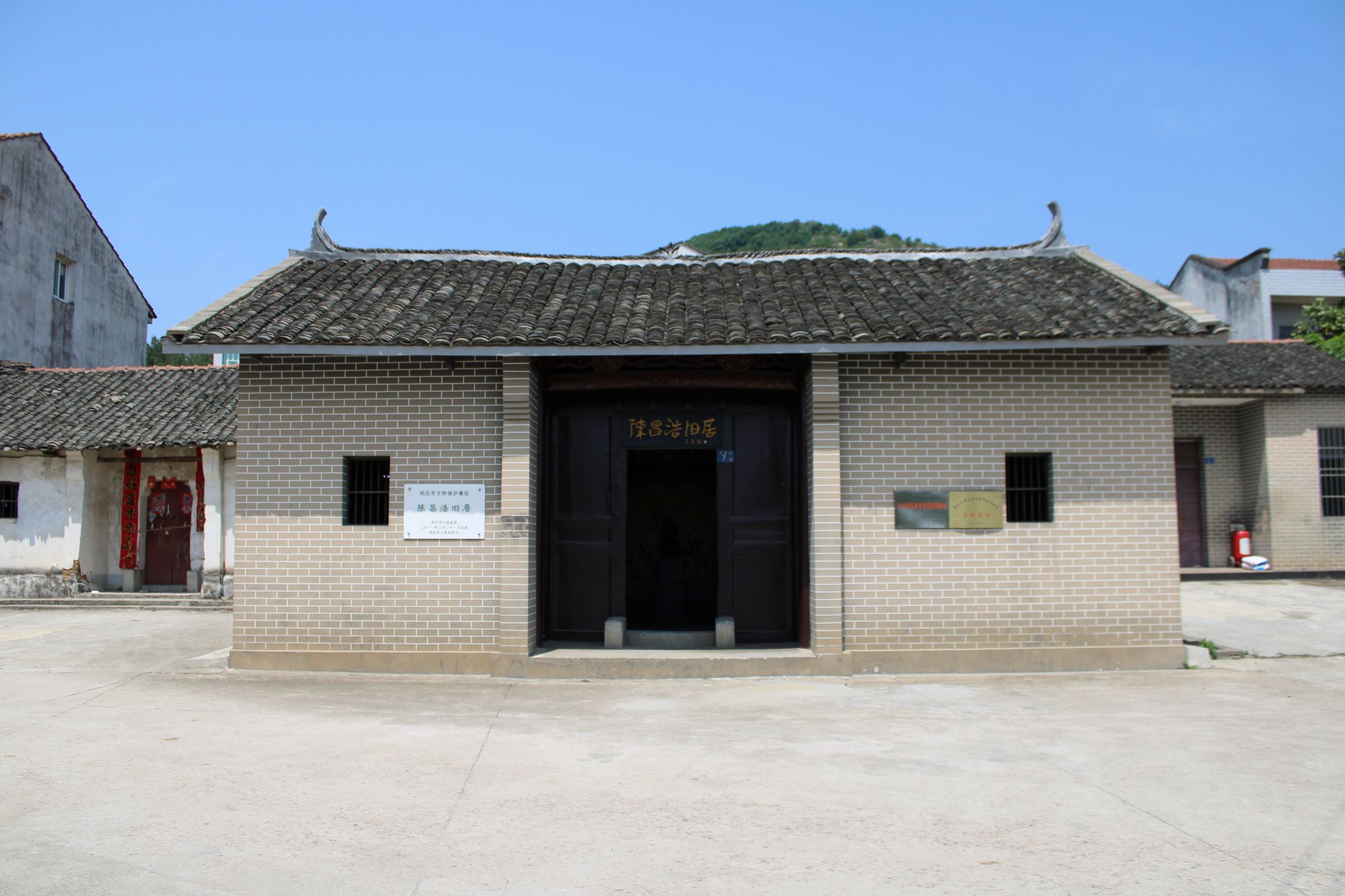 陈昌浩旧居建于清末,房屋平面呈长方形,面宽10.7米,进深16.7米,是一处砖木结构的瓦房。坐西朝东,房间阔三间,内分九间,有前厅、天井、大厅及左右厢房等主体结构。天面为黑瓦,屋内为木架梁结构,门扇、檀柱等。地址:湖北省武汉市蔡甸区奓山街道办事处长新村村委会一组代家庄6号。