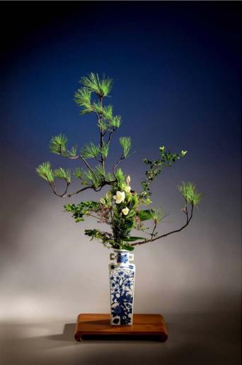万物由气而成,故万物都有元气。松昂然而立,清明似操守君子,插于青花双耳瓶中,配以白色百合,整体清疏灵明,有典雅之意趣。
