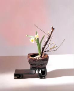 奇香清远共处岁寒,得一尘不染之乐。花与心俱闲,焚好香悦性灵,伴茶。沉香浸入身心,幽幽渺渺,获无穷“静虑”之禅趣。花材:梅、水仙花器:陶钵