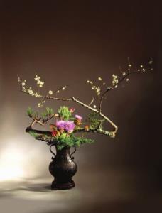 花材:梅花、火焰百合、蓟花、松、柏、黄杨