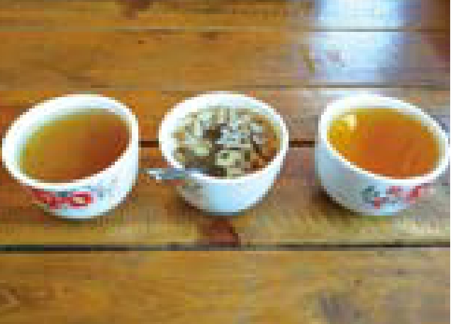 喝茶啜味 拉祜族兄弟认为,烤茶香气足,味道浓,能振精神,才是上等好茶。因此,拉祜族喝烤茶,总喜欢热茶啜饮。