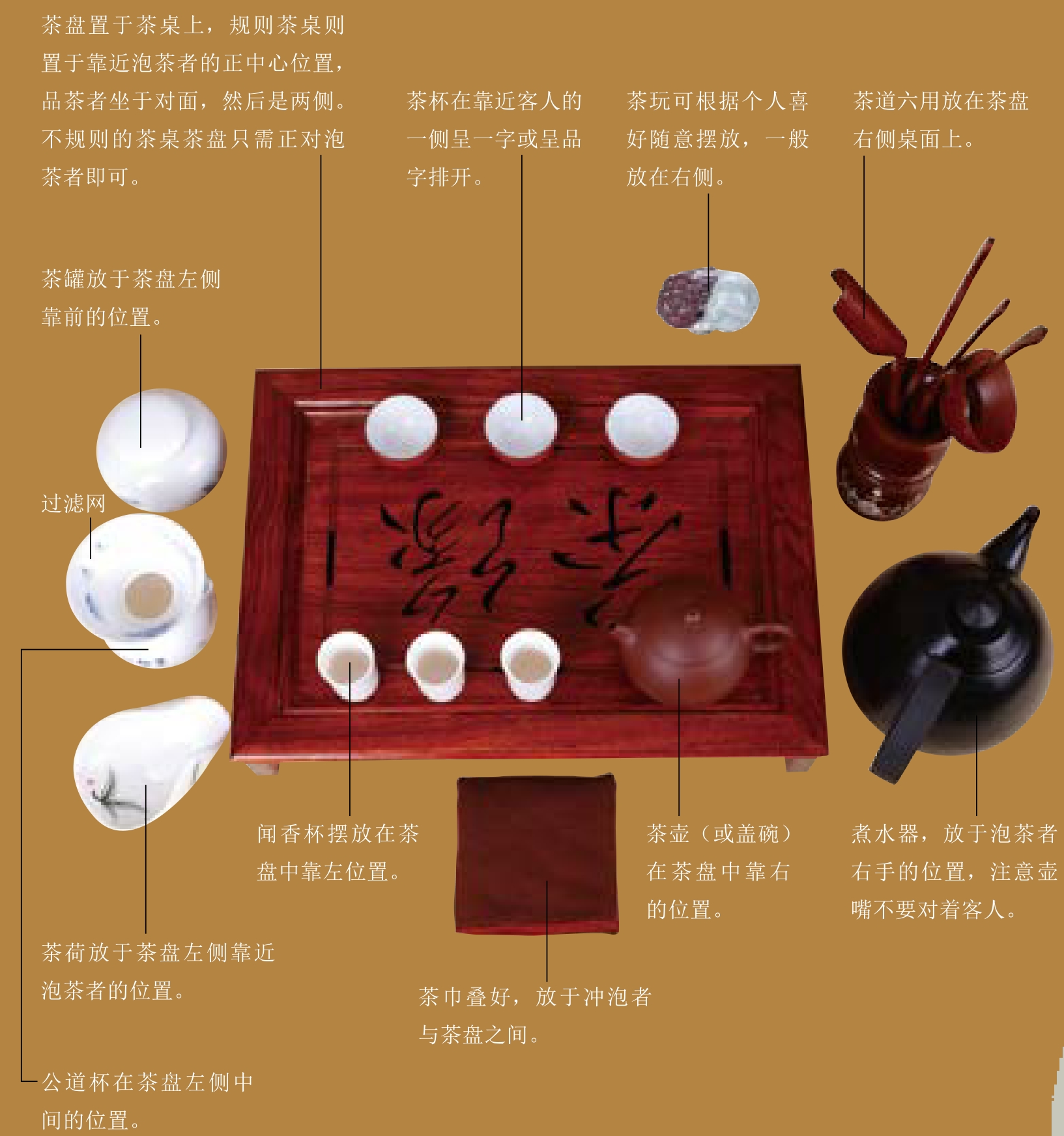 现代茶艺用具及规范摆放示意图