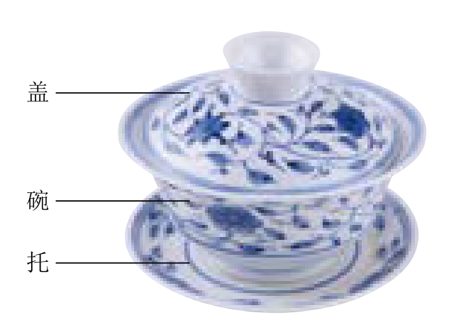 用来冲泡茶叶。盖,拂茶,聚茶香;碗,泡茶,显茶汤;托,防烫,奉客茶。古有“天人地”的说法,图好兆头,寓意深远。