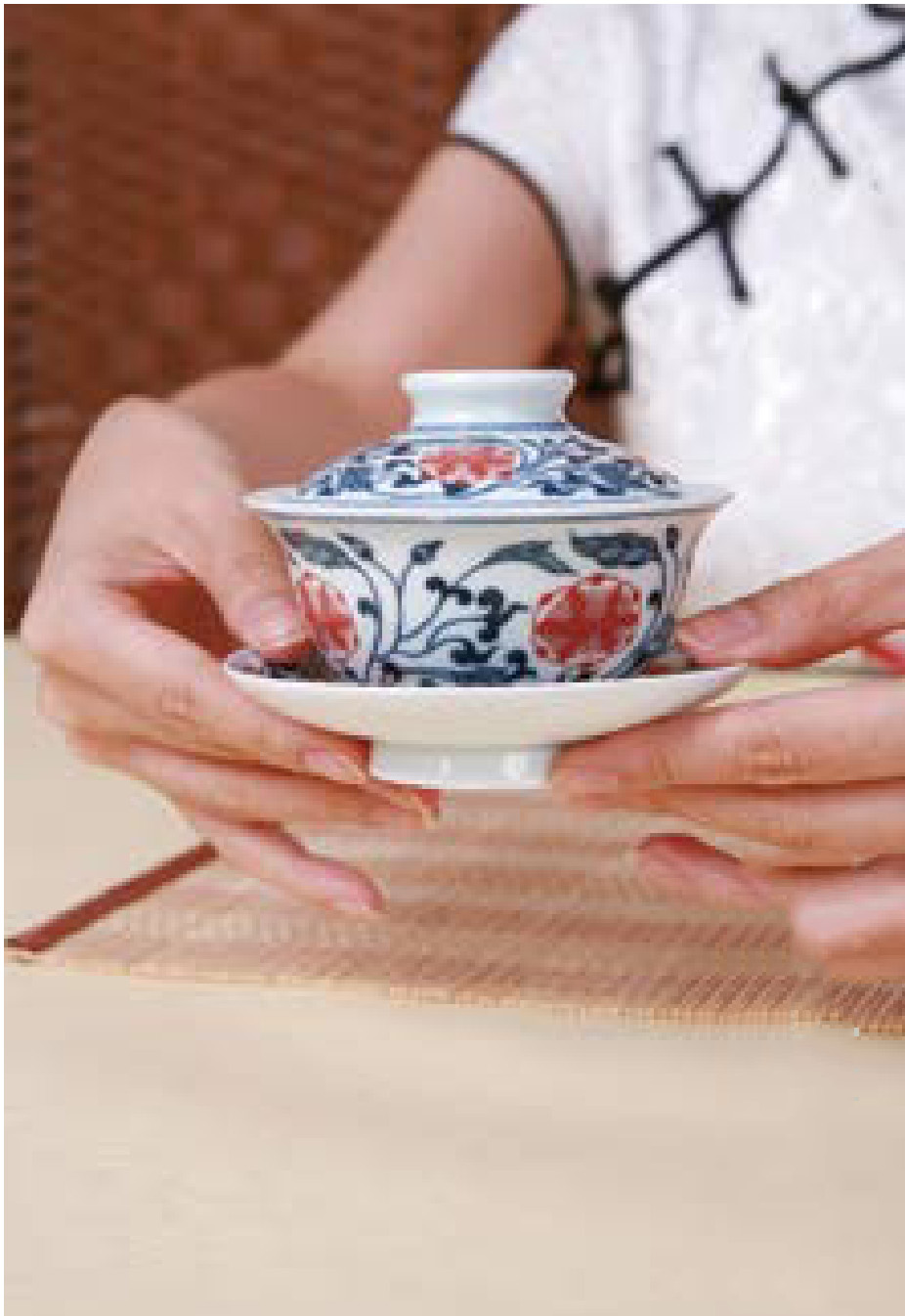 2.用盖碗品茶时,杯盖、杯身、杯托三者不能分开使用,否则既不礼貌也不美观。