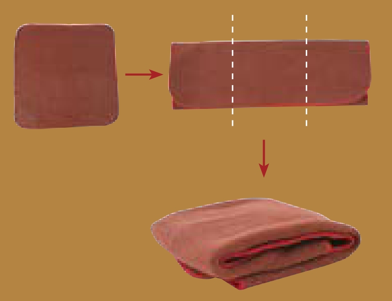 2.折叠茶巾的方法一:首先将茶巾等分三段,先后向内对折;再等分三段重复以上过程。