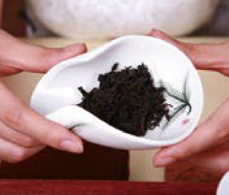 1 准备:先将足量水烧至沸腾。将适量大红袍拨入茶荷。