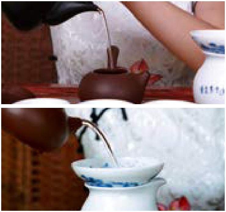 武夷岩茶的冲泡讲究的是高冲水低斟茶,目的是让所投的岩茶充分浸泡。每泡茶出水一定要透彻,否则会影响下一泡的茶汤。