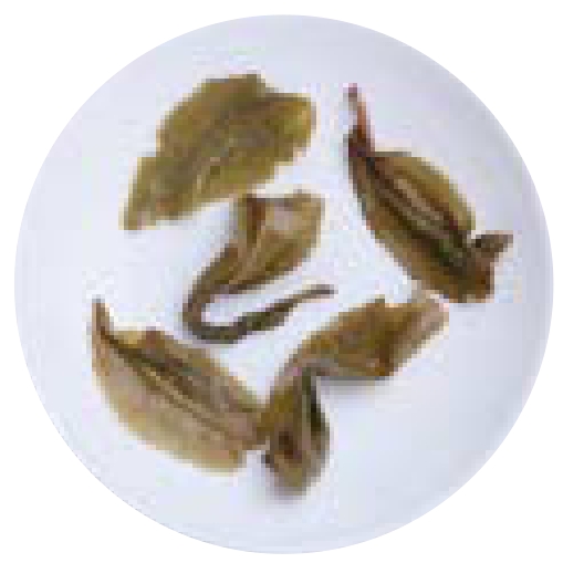 普洱生茶干茶色泽墨绿、褐绿,优质茶条索里有白毫。叶底黄绿、柔润,比较完整。