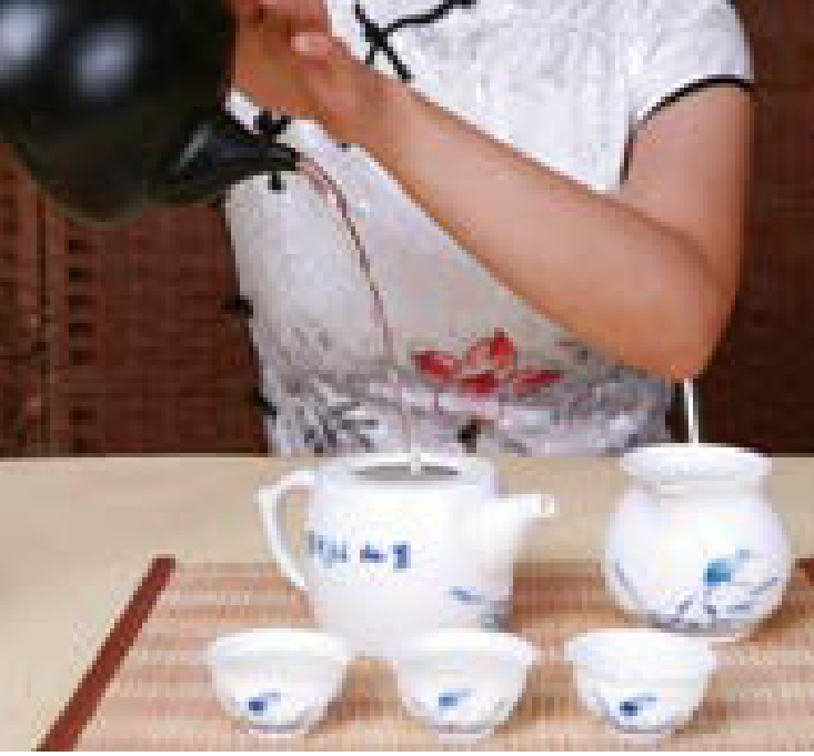 1 温具:向壶中注入烧沸的开水温壶,将温壶的水倒入公道杯后温公道杯,再倒入品茗杯。
